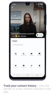 ✔️ Digital business cards showing contact source and color-coded labels