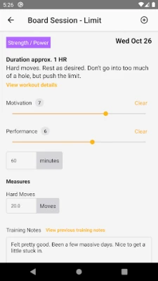 The Sequence mobile app lets you plan your week by scheduling workouts and view your training plan on the go. You can view details and complete your workouts at the crag or the gym, entering notes and measures for the workout as needed, as well as entering your daily biometric records.
